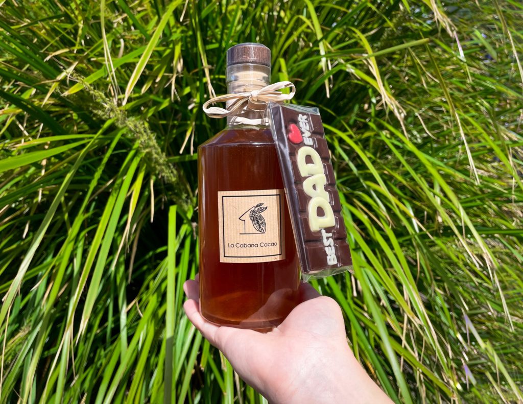 Que diriez-vous de vous laisser tenter par notre bouteille de rhum au cacao du Guatemala ? La recette a été imaginée en collaboration avec une distillerie locale pour que chaque gorgée soit unique. En provenance de Martinique, nous avons sélectionné un rhum de haute qualité qui se marie parfaitement à la saveur délicate du cacao. En plus, pour rester dans le thème, vous pouvez ajouter une petite tablette “Best Dad ever” au nœud entourant le bouchon de la bouteille.